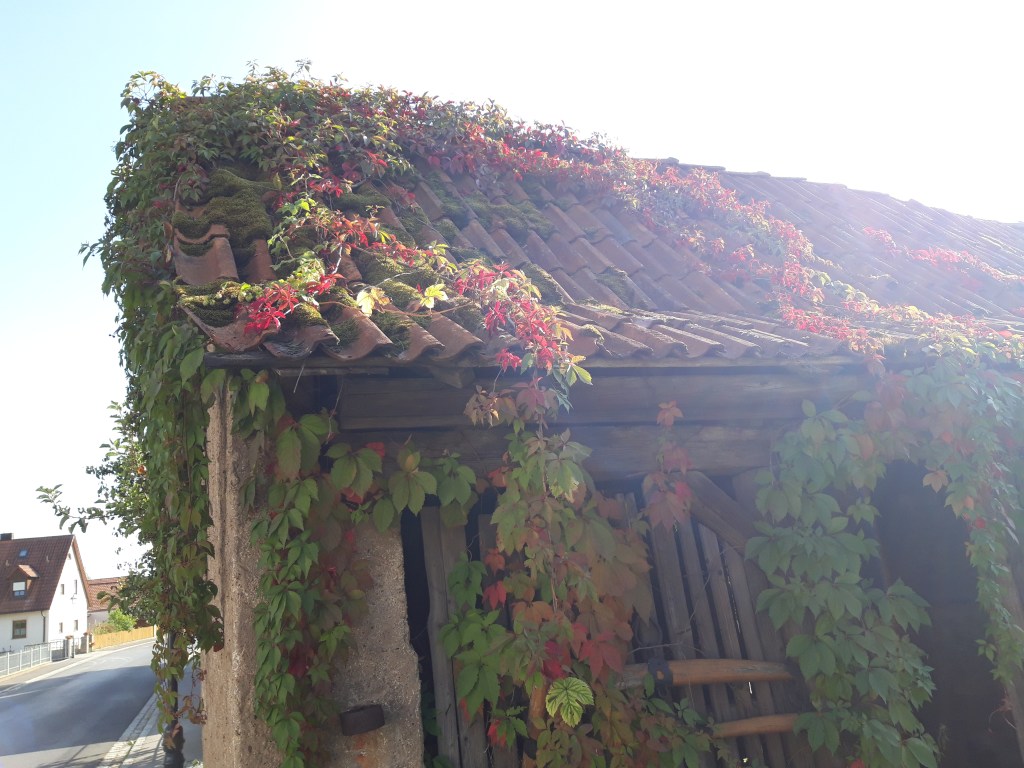 Ich fahre eigentlich grundsätzlich einen Schleichweg von Friesenhausen nach Hofheim, und zwar über die sogenannte Kohlmühle, die an der Nassach liegt, welcher ich bis nach Lendershausen folge. Für Kinder, die in den 1980er Jahren oder früher in Friesenhausen aufgewachsen sind und einen großen Teil ihrer kindlichen Freizeit im Freien verbracht haben, ist die Kohlmühle ein legendärer Ort. Bis auf ein paar Mauerreste und den Eingang in einen alten, fränkischen Gewölbekeller aus porösem Sandstein war schon früher nichts von der Kohlmühle erhalten. Heute ist sie vollkommen von Weinranken überwuchert. „Weißt du noch, als wir als Kinder mal eine Nacktschnecke in der Kohlmühle gegrillt haben?“, ist eine Frage, die zwischen mir und meiner Kindheitsfreundin S. manchmal auftaucht. Ja, ich weiß das noch… Den Eingang zum Sandsteinkeller gibt es entweder nicht mehr, oder ich konnte ihn nicht sehen, weil er inzwischen vielleicht ebenso zugewuchert oder gar eingestürzt ist.