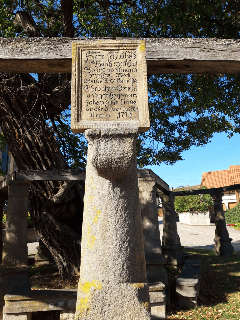 Doch nun zu den Linden, denen ich in Franken über den Weg gelaufen bin. Ich füge sie im folgenden erst einmal mit je einer Bildunterschrift ein. Im Anschluss komme ich noch auf meine Überlegungen zu diesen Linden zurück, bei denen es sich um sogenannte Gerichtslinden handelt. Ich habe die Thematik der Gerichtslinden während der (frühen) Neuzeit sowie das damit verbundene Thema der Frauenverfolgungen, Außenseiterverfolgungen und ritualisierten Frauen- und Außenseitermorde (Hexenwahn) jedoch noch nicht ausführlich recherchiert, sodass meine Überlegungen bitte als spekulativ verstanden werden mögen; außerdem ist meines Wissens nur bei einer von beiden Gerichtslinden der Zusammenhang zum ritualisierten Frauenmord belegt.