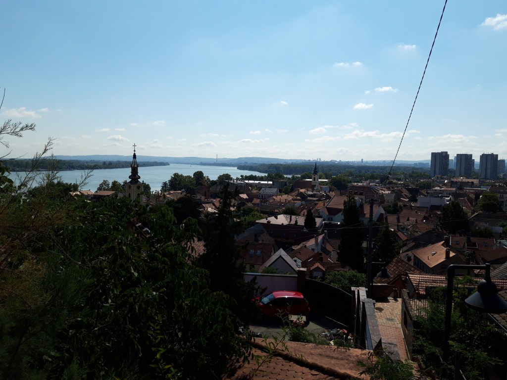 Der 30. August 2021 war unser Abreisetag aus Belgrad — allerdings mit viel Zeit bis zum Abflug am Spätnachmittag. Nach dem Regenwetter der beiden Konferenztage schien endlich die Sonne vom spätsommerlichen Himmel, und eine gemeinsame Belgrader Freundin, die seit einigen Jahren in Berlin lebt, hielt sich während unserer Konferenzteilnahme zufällig auch für ein paar Tage in der Stadt auf. Zu meinem und meiner Kollegin Glück bestand sie darauf, uns beide zum Frühstück nach Zemun zu führen: einem nördlichen Stadtbezirk Belgrads mit eigenem, pittoreskem Altstadtkern, wo man vom höchst gelegenen Gardoš-Turm aus eine phänomenale Sicht auf die hier sehr mächtige Donau genießt.