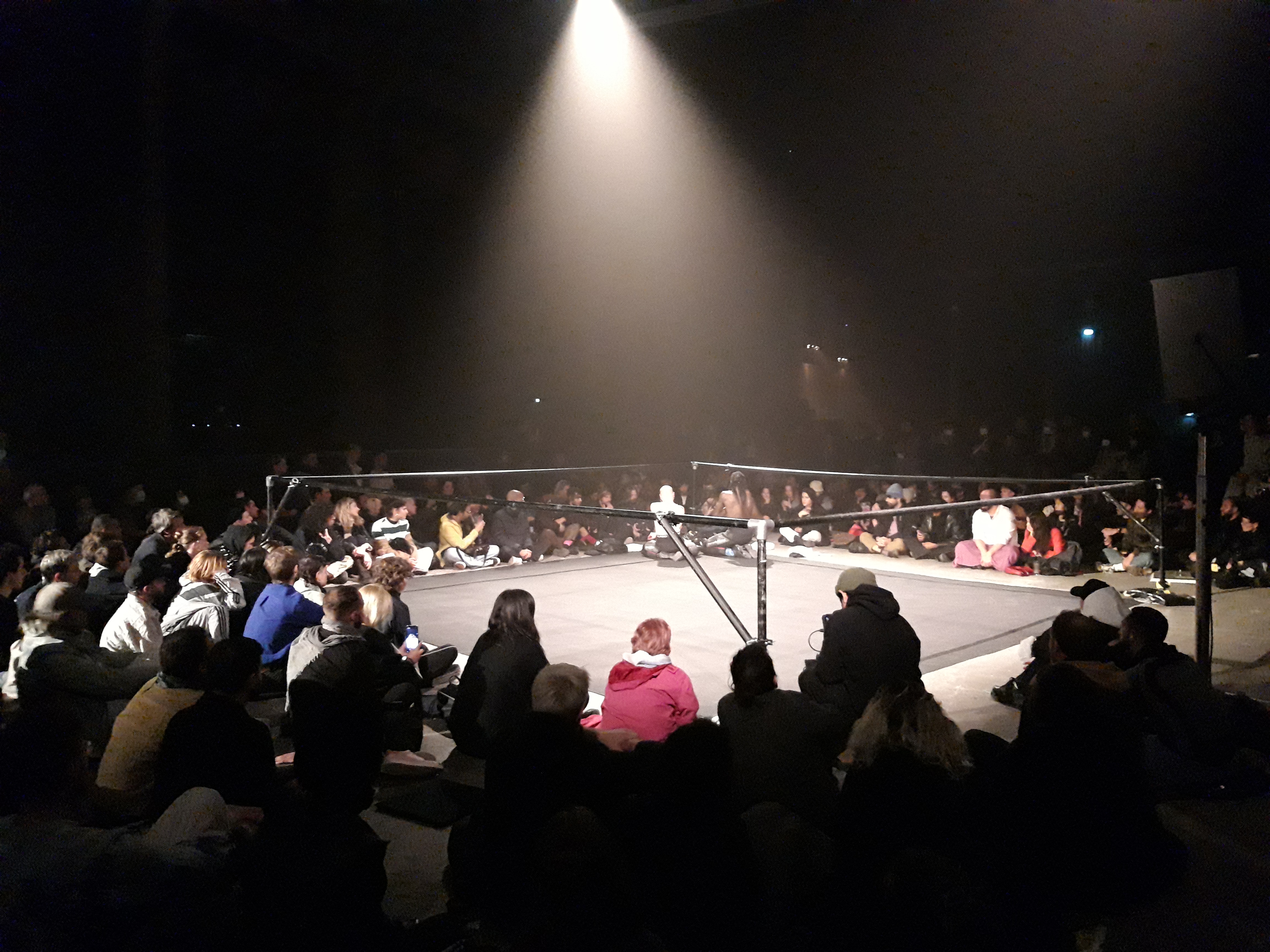 Vorgestern abend zum Beispiel war ich mit Sare bei einer (systemirrelevanten) Performance im riesigen, erschütterlichen Berliner Kraftwerk. Das Stück hieß Kırkpınar, benannt nach den Kırkpınar-Wettkämpfen nahe der thrakischen Stadt Edirne. Dort treten in Öl eingeschmierte Männer mit Lederhose bekleidet zum Öl-Wrestling (yağlı güreş) an, einer besonders in Ostthrakien und anderen Teilen der Türkei, Bulgarien, Nordmazedonien und Griechenland verbreiteten Art des Ringens. Laut Programmankündigung wollte der Künstler Caner Teker Elemente von yağlı güreş aneignen, um damit queere Räume zu erschließen. Nun ja. Wir saßen auf dem Boden, im Kreis um einen (eckigen) Ring, in dem geringt werden sollte. Es gab ein paar Szenen, in denen die beiden Performancekünstler durch das im Kreis sitzende Publikum krabbelten, liefen oder schweres Gestänge schleppten. Auf unserer Seite des Rings mimte der Ringer beim durchkrabbeln viehische Geräusche. Wenn er vorbei kam, standen die Leute auf.