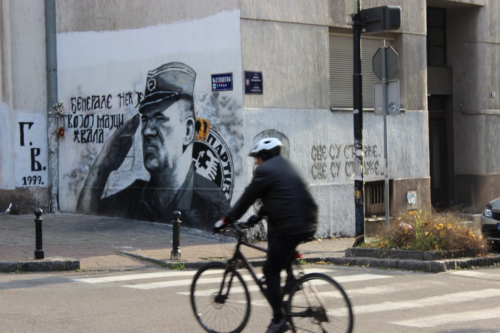 Dieser Kommentar entsteht als Echo auf einen Beitrag unter dem Titel Serbia’s War on Free Media is Moving to ‚Street Level‘ des Journalisten Milenko Vasovic, veröffentlicht auf Balkan Insight am 30.11.2021. Darin wird eine progressive Entwicklung der direkten, immer brutaleren Unterdrückung der Presse beschrieben, die unter dem Regime des derzeitigen serbischen Präsidenten Aleksandar Vučić eine unerreichte Vehemenz erreicht habe. Diese zeichne sich laut Autor dadurch aus, dass nicht nur der staatliche Apparat des Regimes an dieser Unterdrückung der Presse arbeite, sondern auch parastaatliche Formationen, wie zum Beispiel die sogenannten „Volkspatrouillen“ (narodne patrole). Diese „beschützen“ beispielsweise das umkämpfte Mural des Kriegsverbrechers Ratko Mladić und sind mir bei meinem letzten Besuch in Belgrad (15. – 18. November 2021) auch schon persönlich begegnet, als ich Aufnahmen machte: sie riefen mir beim fotografieren in den Rücken, „Er ist der schönste“ / „On je najlepši“.