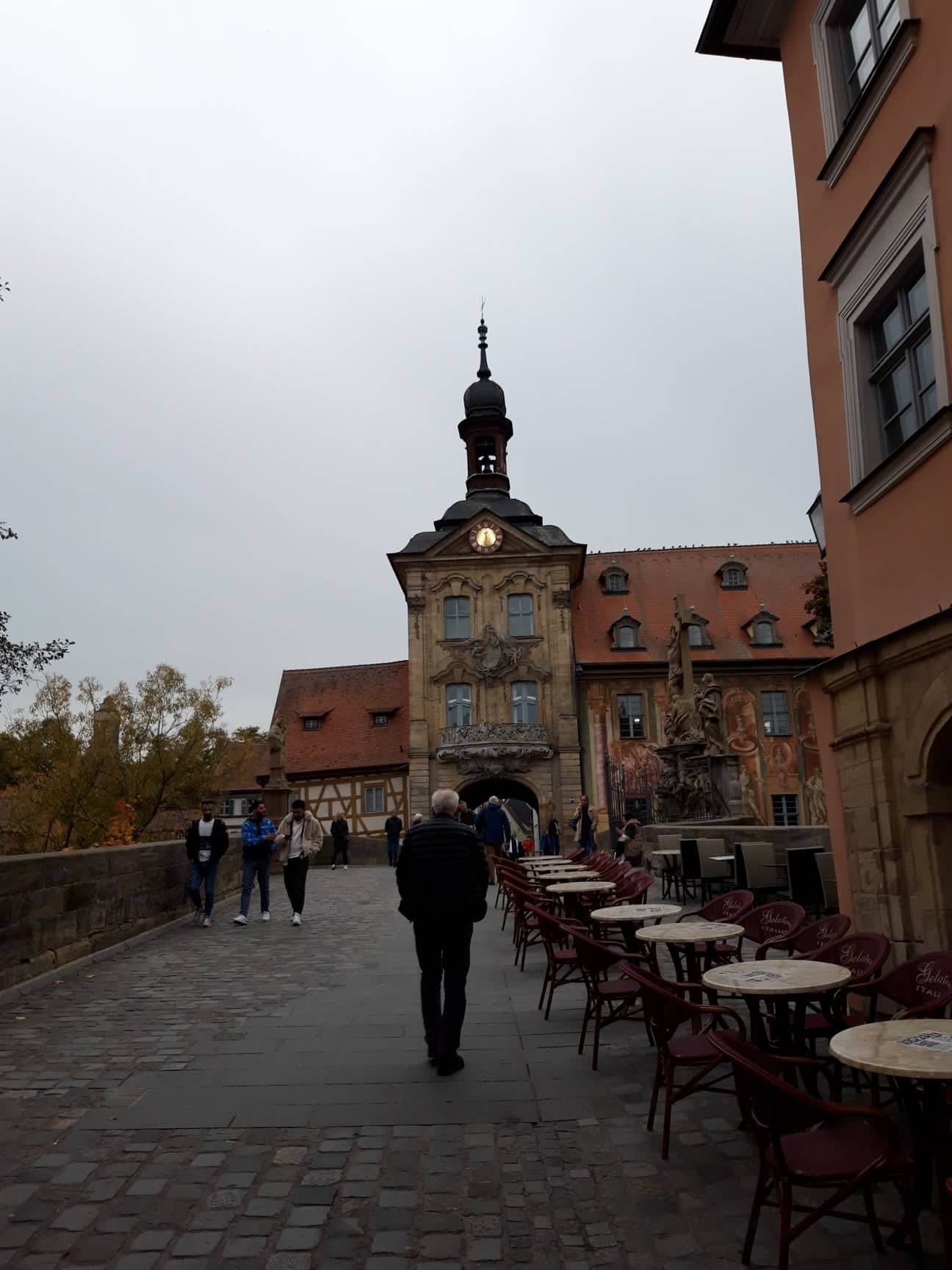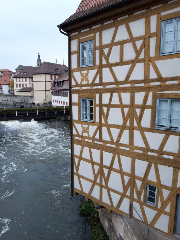 Überall um einen herum steht also altes, fränkisches Gerütsch. Das sie sich erhalten und pflegen. Und das sie sich natürlich auch, sehr erfolgreich sogar, vermarkten: in Bamberg stehst du in einem anerkannten Weltkulturerbe. Davon träumt unser Museumspark in Brandenburg gerade nur. Und wenn man sich das alte Gerütsch und das Gemäuer hier anschaut, dann weiß man auch, warum: Hier sind sehr lange keine Bomben mehr vom Himmel gefallen (Betonung: hier). Man hegt vielleicht finstere Nebengedanken, während es anfängt, leicht zu regnen.