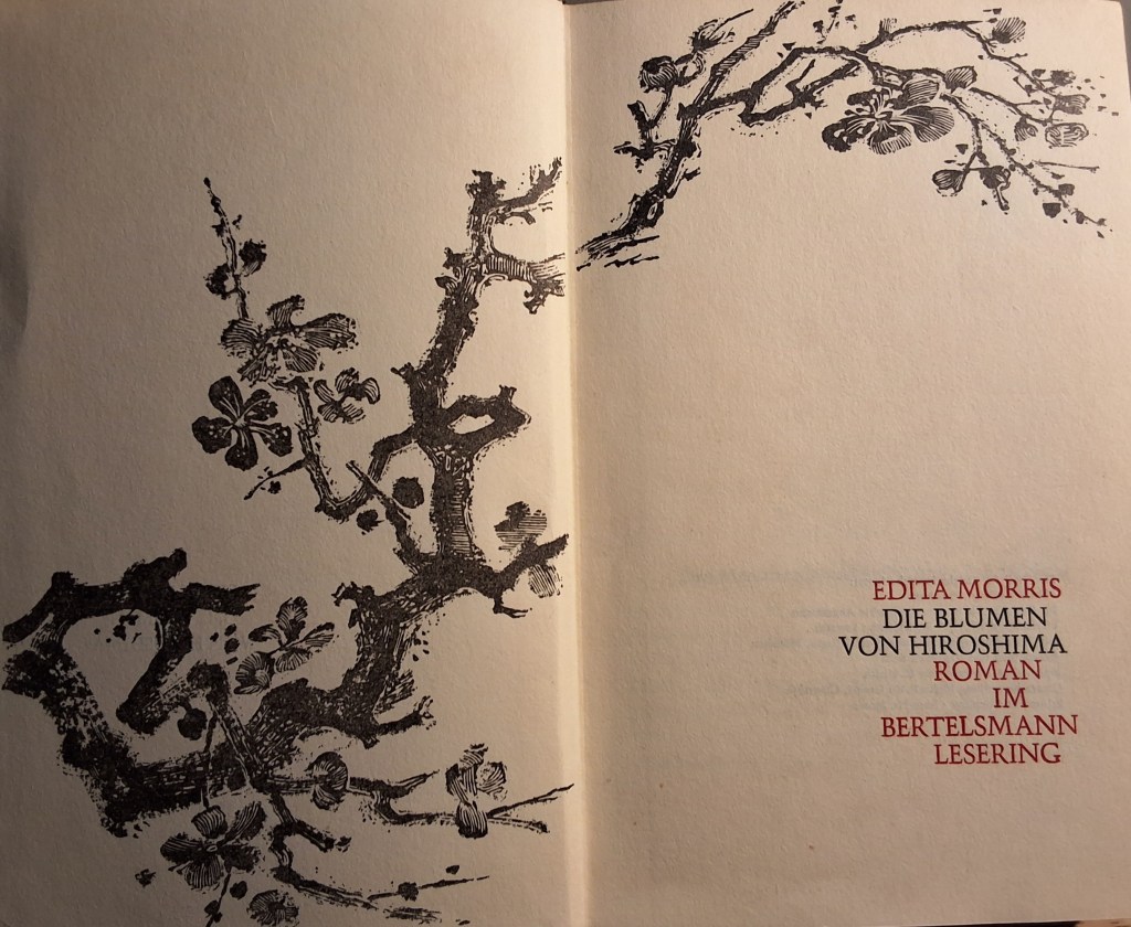 Zuletzt muss ich noch an diesen merkwürdigen Bücherschrank in unserem alten Haus in Franken denken, der stilistisch auch in Jeanne Dielmans Wohnung gepasst hätte — dort wahrscheinlich in ihren Hausgang. Es war eher ein Kommode in schmucklosem Nachkriegs(?)design, deren obere Fächer mit Glasschiebetüren versehen waren, während der untere Teil Schwingtüren aus Holz hatte. Oben befanden sich Sammeltassen und Nippes, unten war alles zugestopft mit Büchern. Letzteres zeigt an, dass in diesem Haushalt damals eher wenig bis gar nicht gelesen wurde. Unter den Büchern befanden sich jüngere Schwarten wie James Clavells Noble House Hong Kong, das im Original 1981 erschienen ist und sich mir nie erschloss; desweiteren fanden sich völlig uninteressante Konsalik-Bücher, religiöse Literatur, Kochbücher und anderes. Ein älteres Buch, nämlich der Antikriegsroman Die Blumen von Hiroshima von Edita Morris (1959, Dt. 1960), hat hingegen sofort mein Interesse geweckt. Es zählt zusammen mit Insel der Seefahrer zu meinen Grundbüchern.