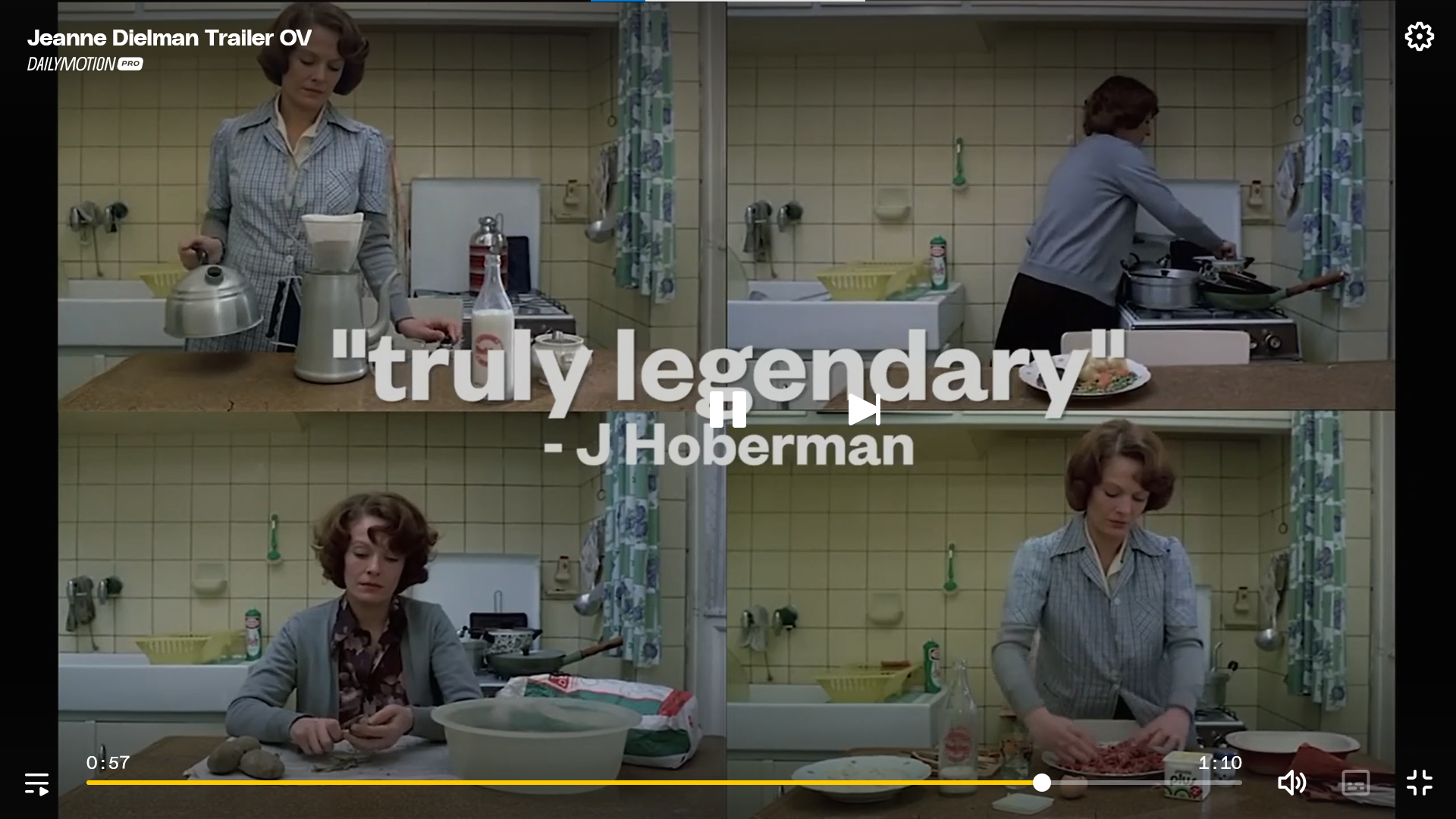 Auch ich habe es gerade gemütlich, lese kein Buch, schmiere über einen neuen Touchscreen — und schaue nebenher Jeanne Dielman, einen belgischen Film aus dem Jahr 1975 von Chantal Akerman.
