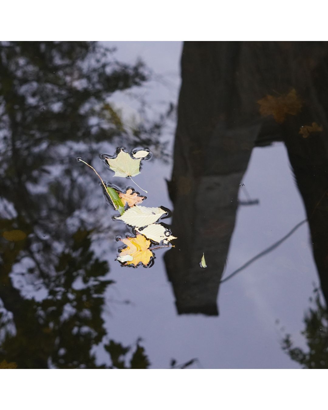 Ich hatte das Mädchen und ihre Mutter vorher schon auf ihren Rädern bemerkt. Das Mädchen fragte interessiert, warum ich so in den dreckigen Kanal hineinleuchte. Ich erklärte ihr, dass ich nicht leuchtete, sondern versuchte, Wasserspiegelungen und Oberflächenspannungen rund um gefallenes Laub einzufangen. Nur auf der Oberfläche überaus schmutzig-trüben, aber spiegelnden Wassers schien es möglich zu sein, den Effekt einer Dia-Leinwand der späten 1980er Jahre herzustellen. Eine Tür namens Nostalgie in die „Anderswelt“, gewissermaßen, mit einer Prise jahreszeitlichen Schwermuts. Wie gerne flöhe ich einmal in die 1980er — wenn auch nur für einen dreitägigen Trip. Im Omnibus mit Kung-Fu-Filmen, an egal welchen Ort. Am ehesten Südost- oder Mitteleuropa, gerne auch Zone, warum nicht auch Paris oder gleich ganz bis nach Brest?
