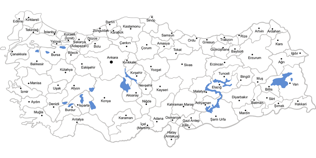 Turkey’s capital Ankara is located in the Central Anatolia Region (İç Anadolu Bölgesi), which is one of Turkey’s seven regions (bölge); however, these are rather geographical than administrative units.[3] Administratively, the country is subdivided into 81 provinces (il), 973 districts (ilçe), numerous towns (şehir or belde), villages (köy) and neighbourhoods (mahalle). Istanbul, situated at the shores of the Bosphorus in the northwesternmost Marmara Region, is an anomaly of the centralized state – given that its significance as a cultural, social, economical and cosmopolitan megacity (megakent[4]) outshines Ankara’s attractivity in any thinkable way.